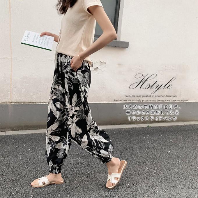 ガウチョパンツ レディース きれいめ ガウチョパンツ コーデ 40代 ウエストゴム ズボン ウエストゴムパンツ レディース マキシ丈 花柄 ボタニカル ワイドパンツ Lady Loco Prime 通販 Yahoo ショッピング