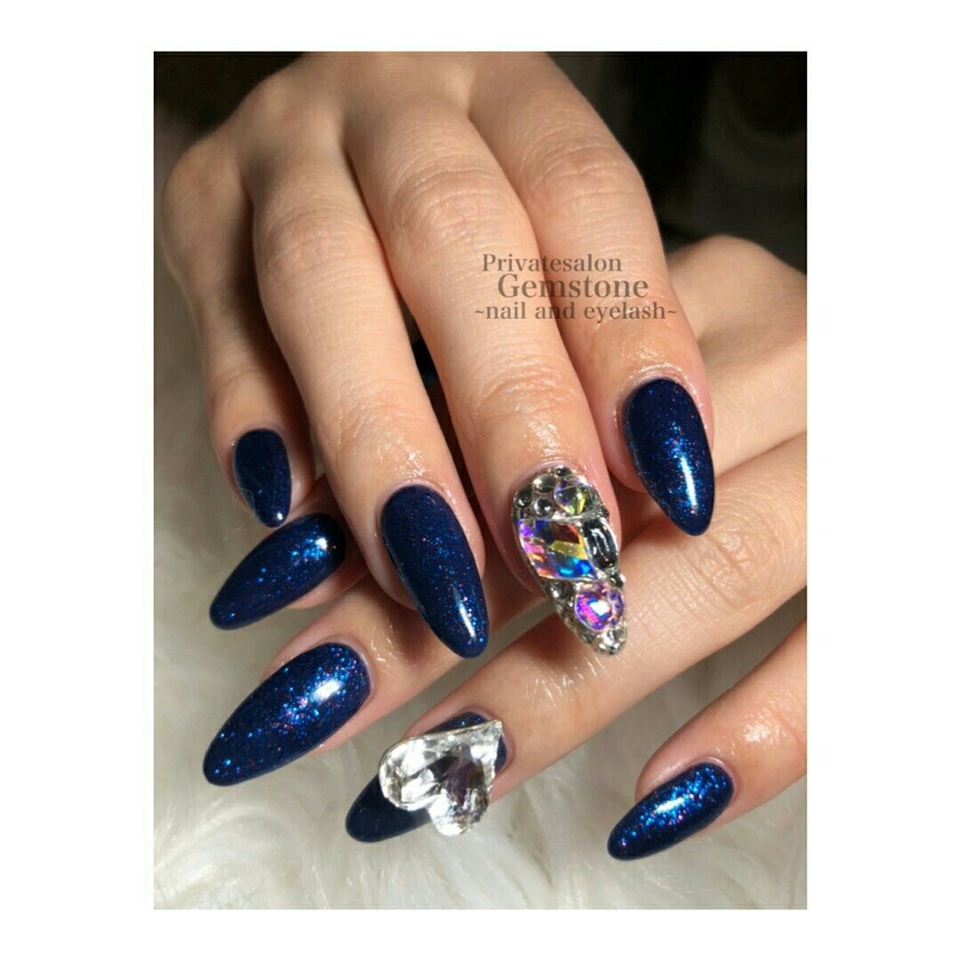 黒 青ラメネイル なる のネイル ネイルクルー
